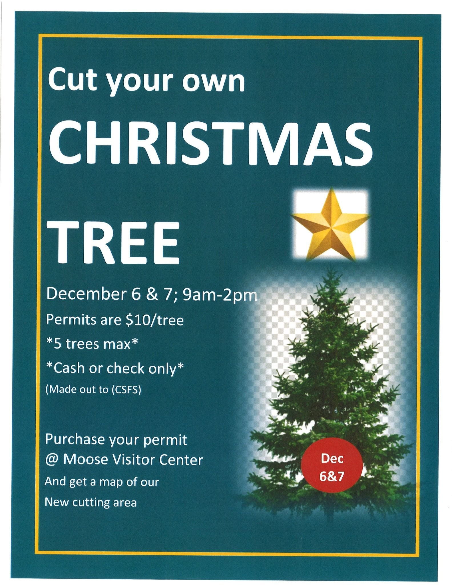 Starting off with the annual Christmas Tree Cutting event at the Colorado State Forest State Park in Gould, CO on HWY 14. Dec 6-7 from 9am to 2pm, you can cut your own tree for just $10 per tree (limit 5 trees, please). Stop by the Moose Visitor Center to get your map to the cutting area. Cash and check payments only. Be sure to bring tie-downs and a hot beverage and snacks for the drive. The scenery around Gould is incredible too, so you might want to bring your camera.